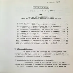 Mais c’est à partir de 1963 que le premier projet d’un Ecotron est soumis à l’Université de Montpellier par Frode Eckardt (CNRS).